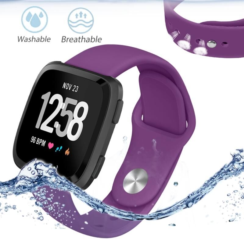For Fitbit Versa 2 / Fitbit Versa / Fitbit Versa Lite Solid Color Silicone Watch Band, Size:S(Purple)