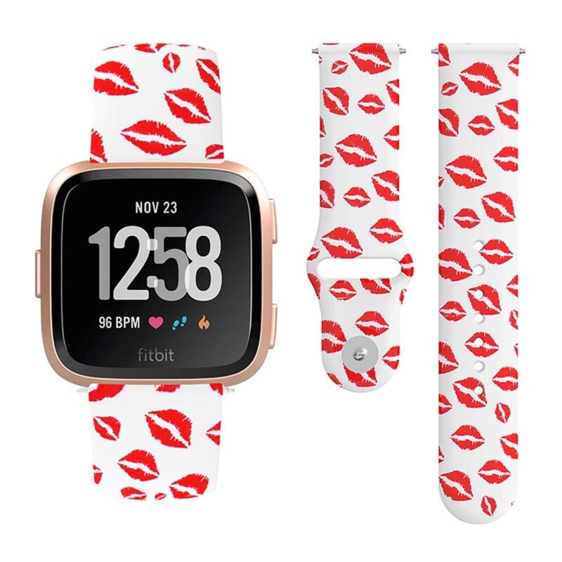 For Fitbit Versa 2 / Lite 22mm Reverse Buckle Printed Silicone Watch Band(Red Lips)