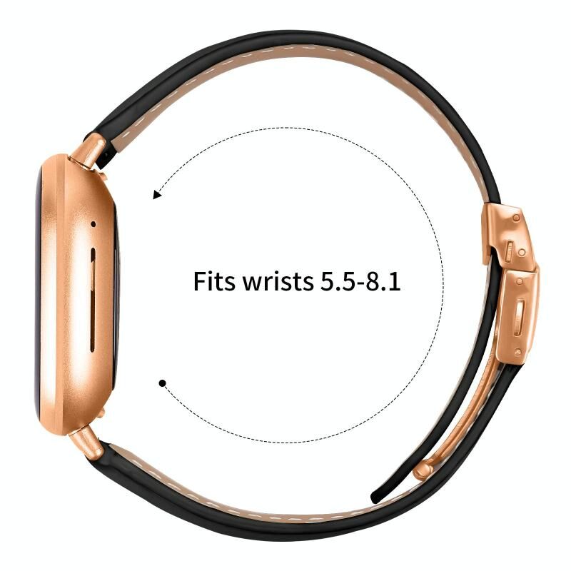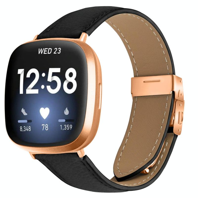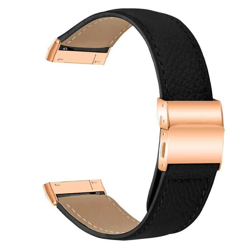 For Fitbit Versa 3 / 4 Lychee Texture Rose Gold Turtle Back Buckle Leather Watch Band(Black)