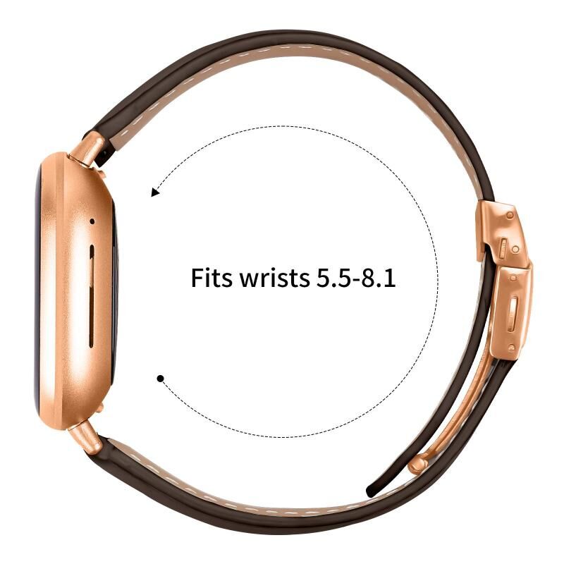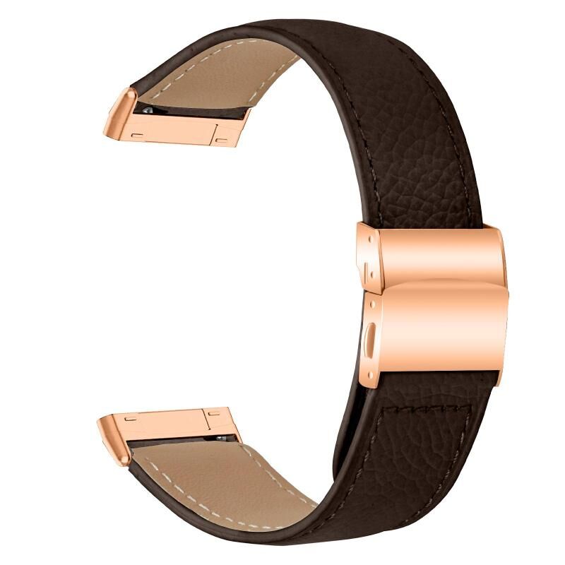 For Fitbit Versa 3 / 4 Lychee Texture Rose Gold Turtle Back Buckle Leather Watch Band(Coffee Color)