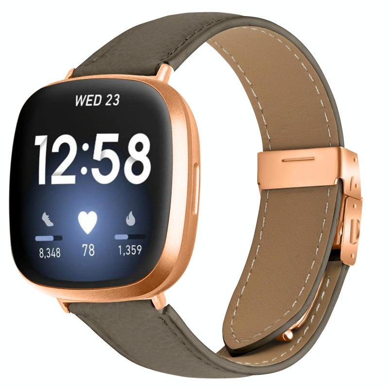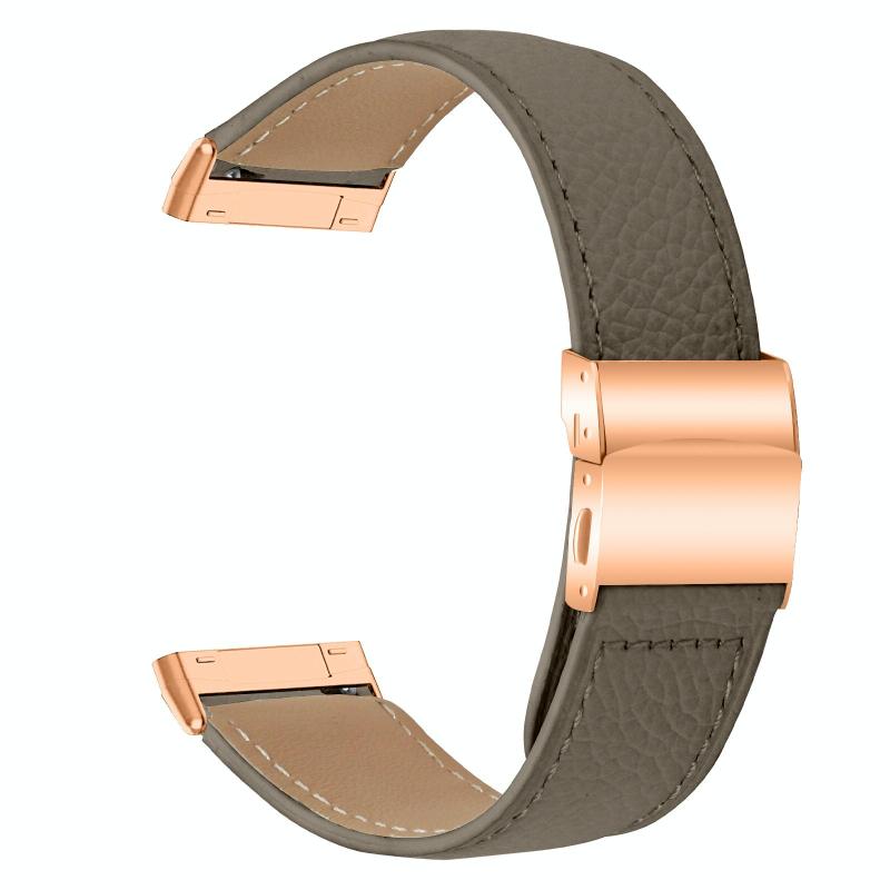 For Fitbit Versa 3 / 4 Lychee Texture Rose Gold Turtle Back Buckle Leather Watch Band(Gray)