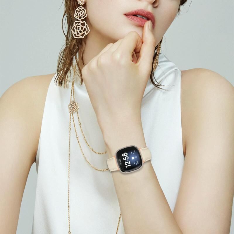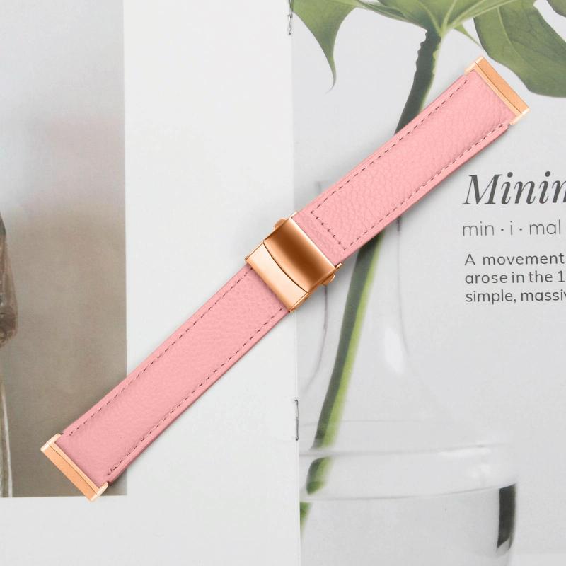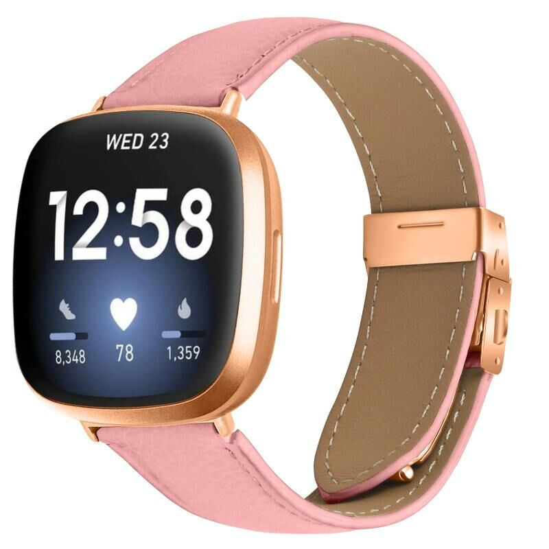 For Fitbit Versa 3 / 4 Lychee Texture Rose Gold Turtle Back Buckle Leather Watch Band(Pink)