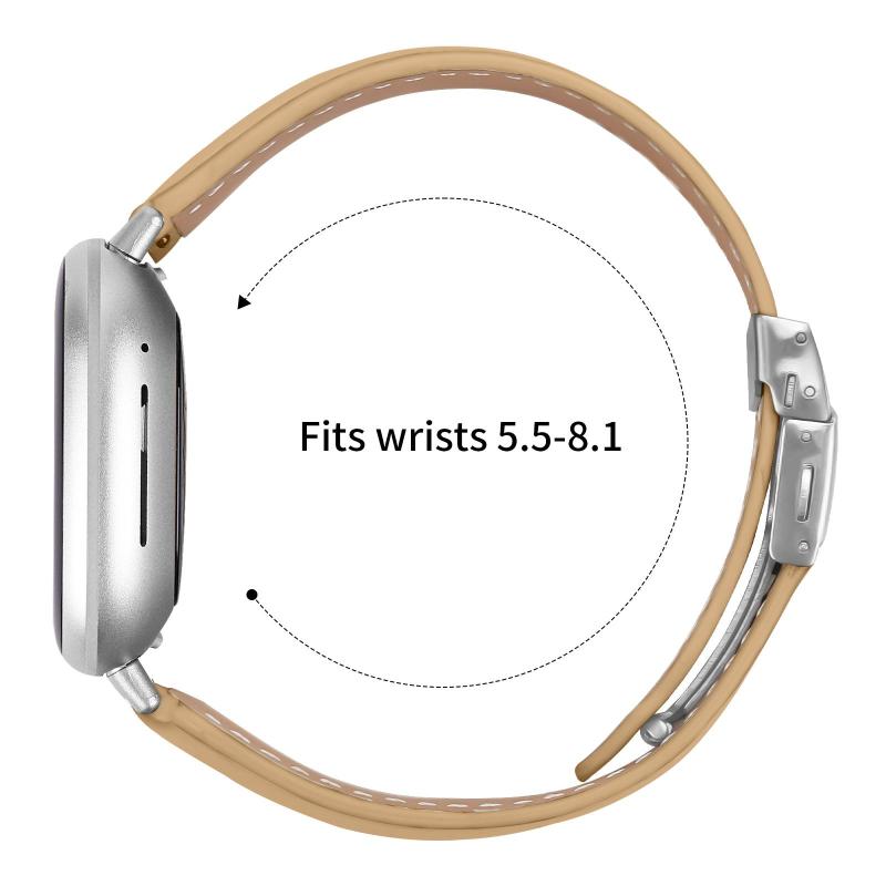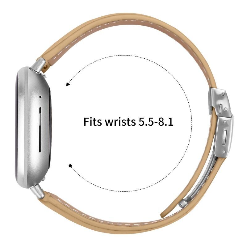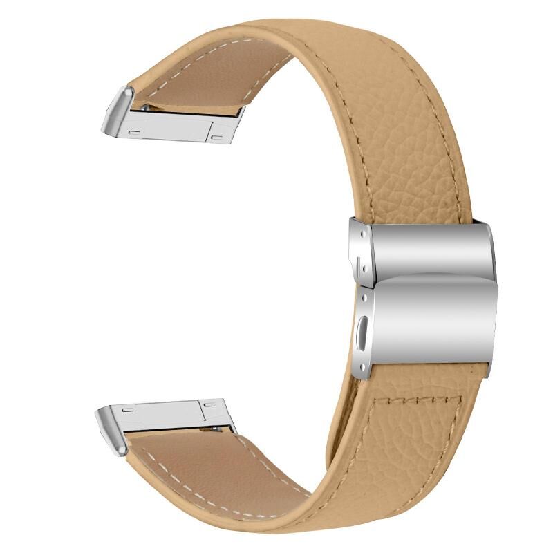 For Fitbit Versa 3 / 4 Lychee Texture Silver Turtle Back Buckle Leather Watch Band(Camel)