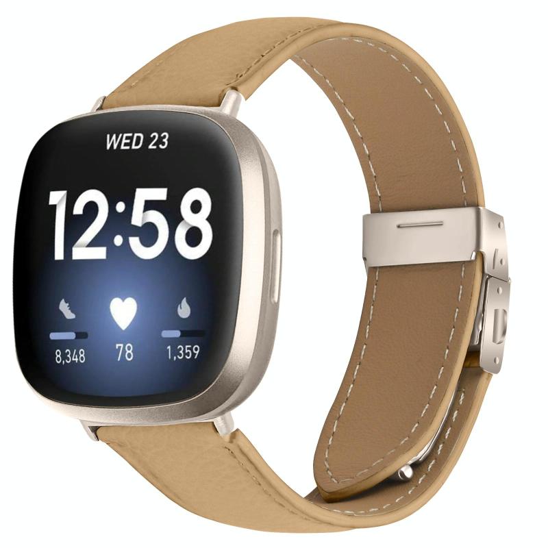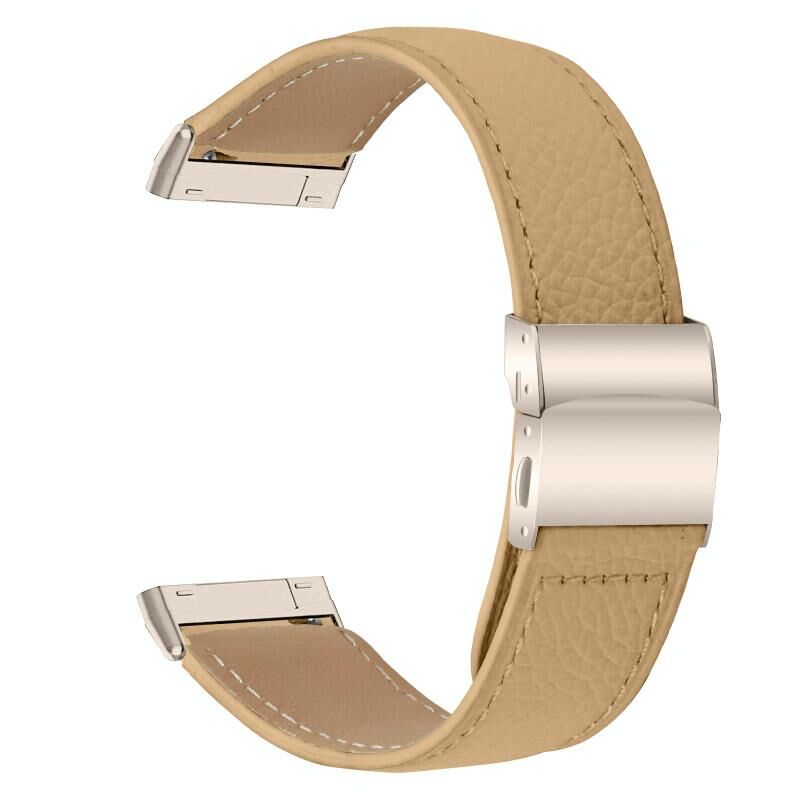 For Fitbit Versa 3 / 4 Lychee Texture Starlight Turtle Back Buckle Leather Watch Band(Camel)
