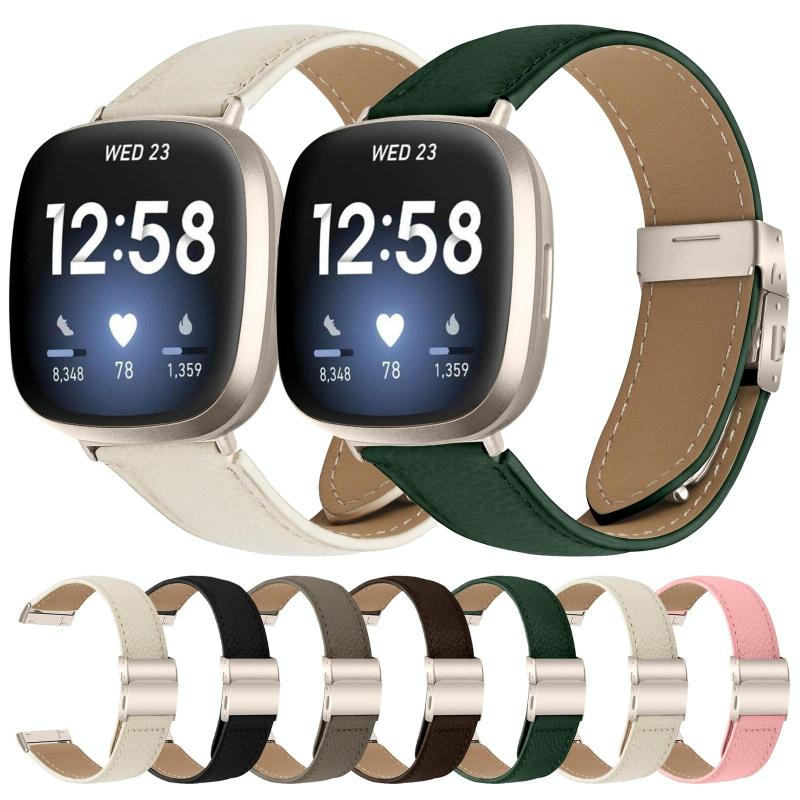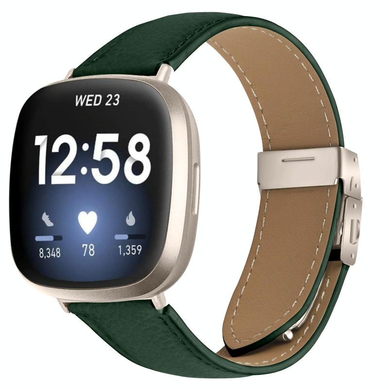 For Fitbit Versa 3 / 4 Lychee Texture Starlight Turtle Back Buckle Leather Watch Band(Green)