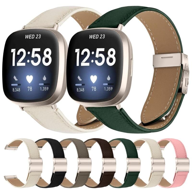 For Fitbit Versa 3 / 4 Lychee Texture Starlight Turtle Back Buckle Leather Watch Band(Pink)