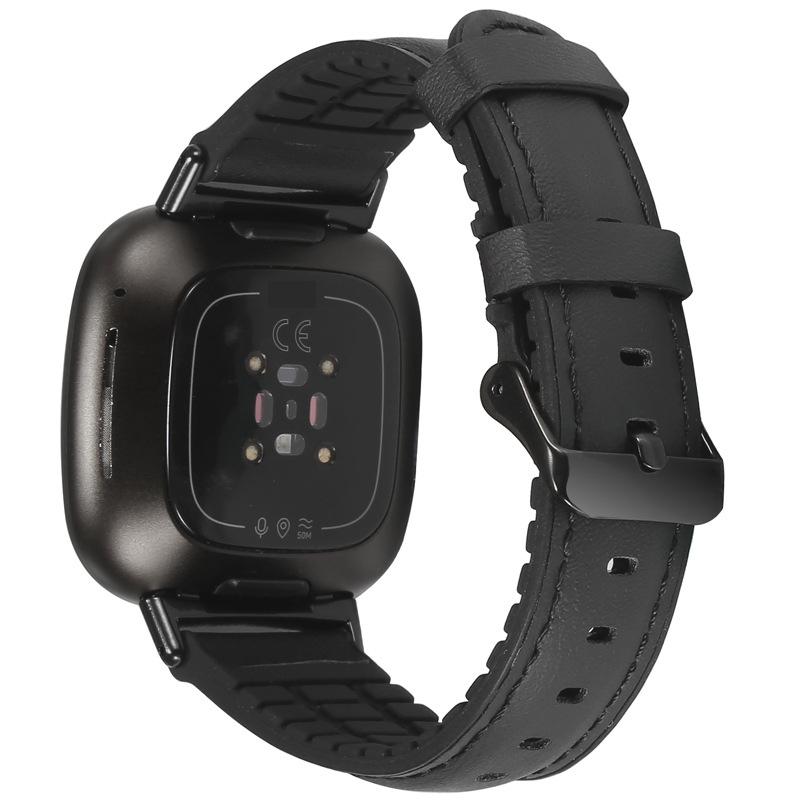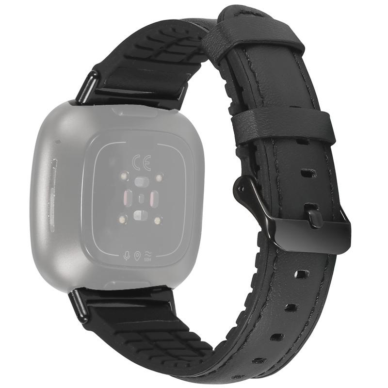 For Fitbit Versa 3 Leather + Silicone Watch Band(Black)