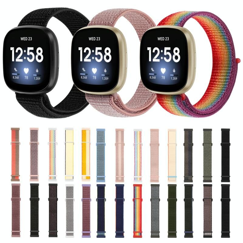 Για Fitbit Versa 3 Νάιλον καουτσούκ πόρπη ρολόι μπάντα (ριγέ ροζ)