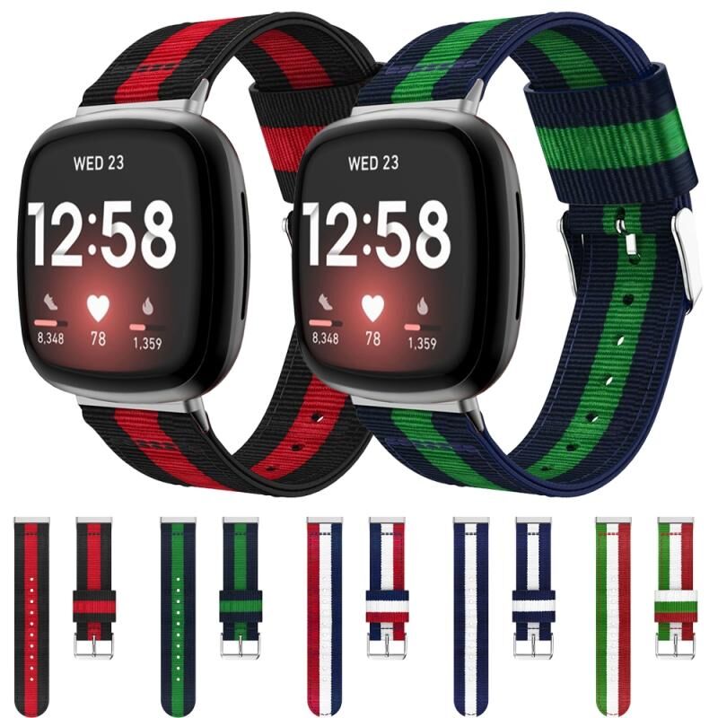 For Fitbit Versa 3 Nylon Watch Band(Red White Blue)