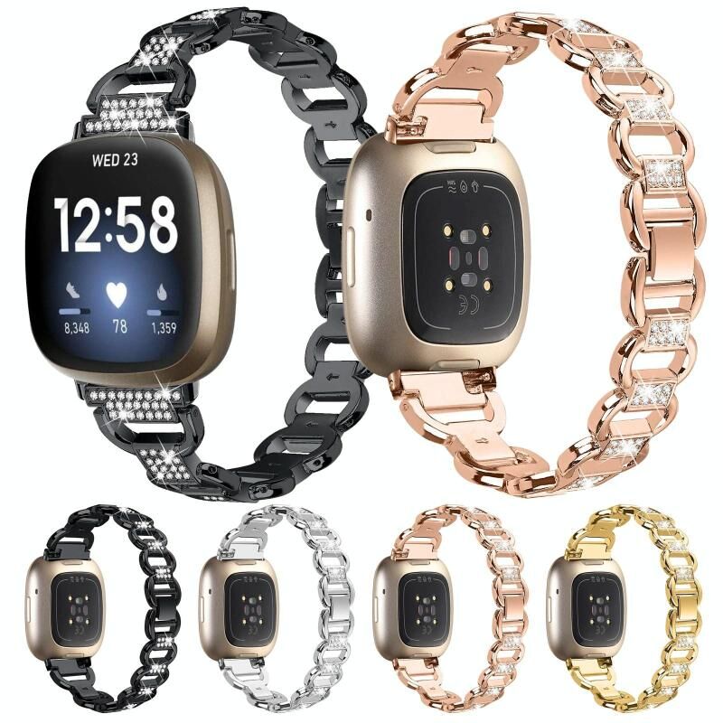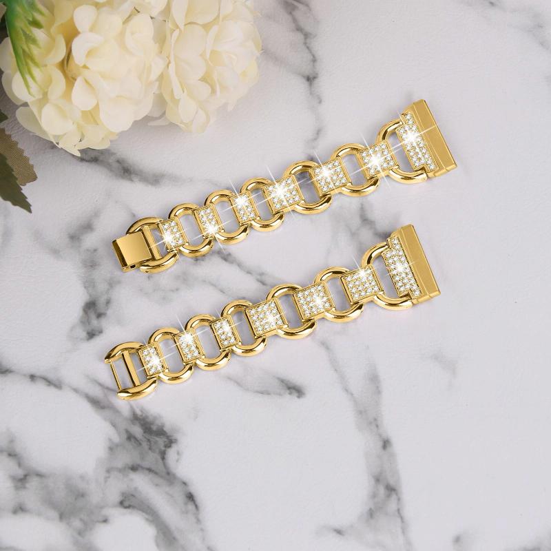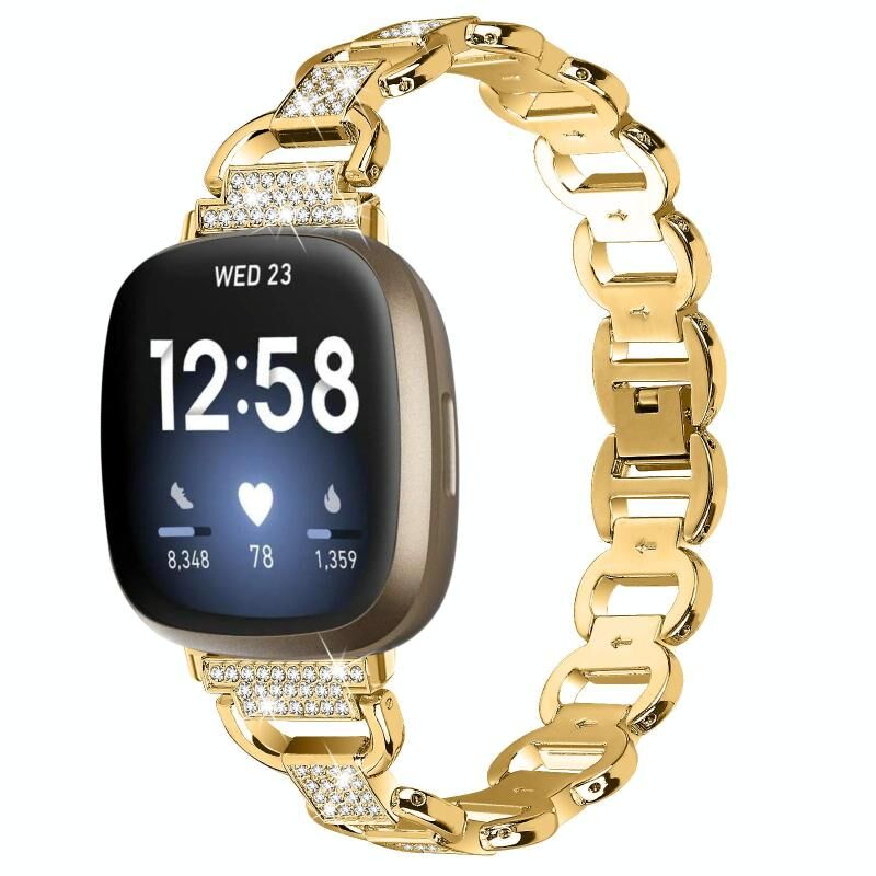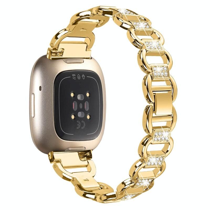 For Fitbit Versa 3 Oval Diamond Stainless Steel Watch Band(Gold)