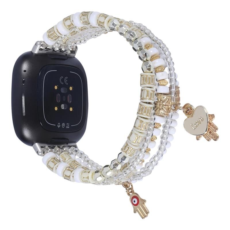 For Fitbit Versa 3 / Sense Palm Bead Chain Watch Band(White)