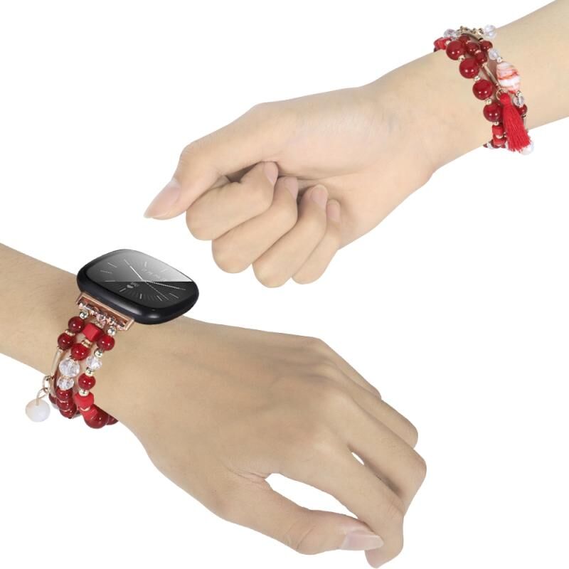 For Fitbit Versa 3 / Sense Round Bead Chain Watch Band(Red)
