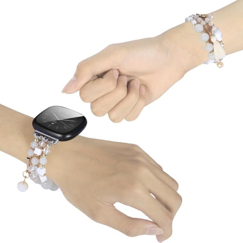 For Fitbit Versa 3 / Sense Round Bead Chain Watch Band(White)