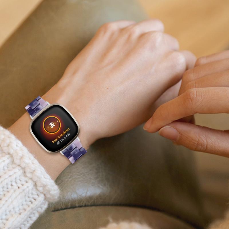 For Fitbit Versa 3 / Sense Universal Resin Watch Band(Dark Black Pink)