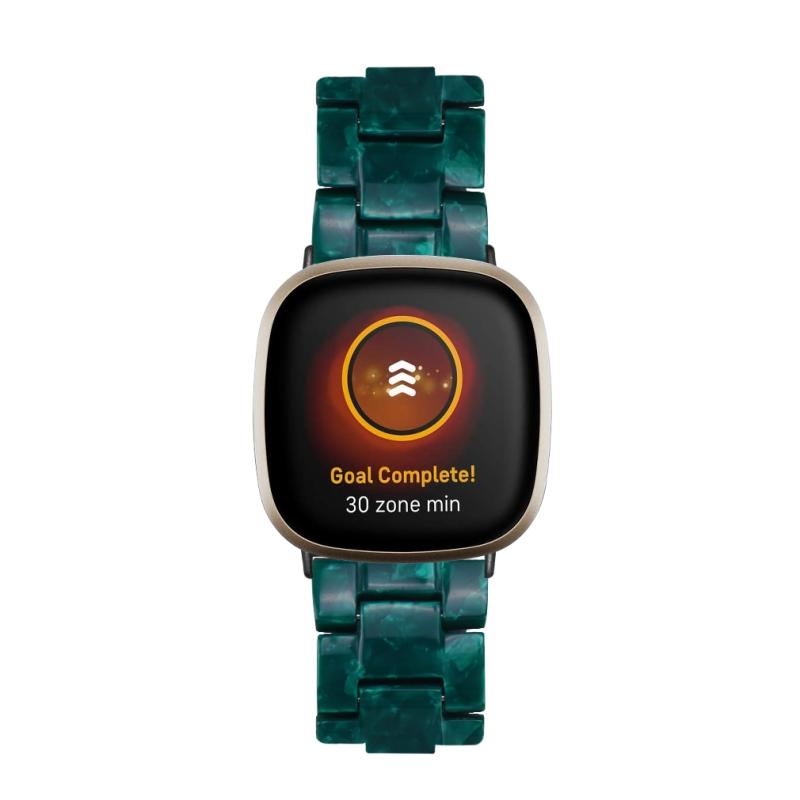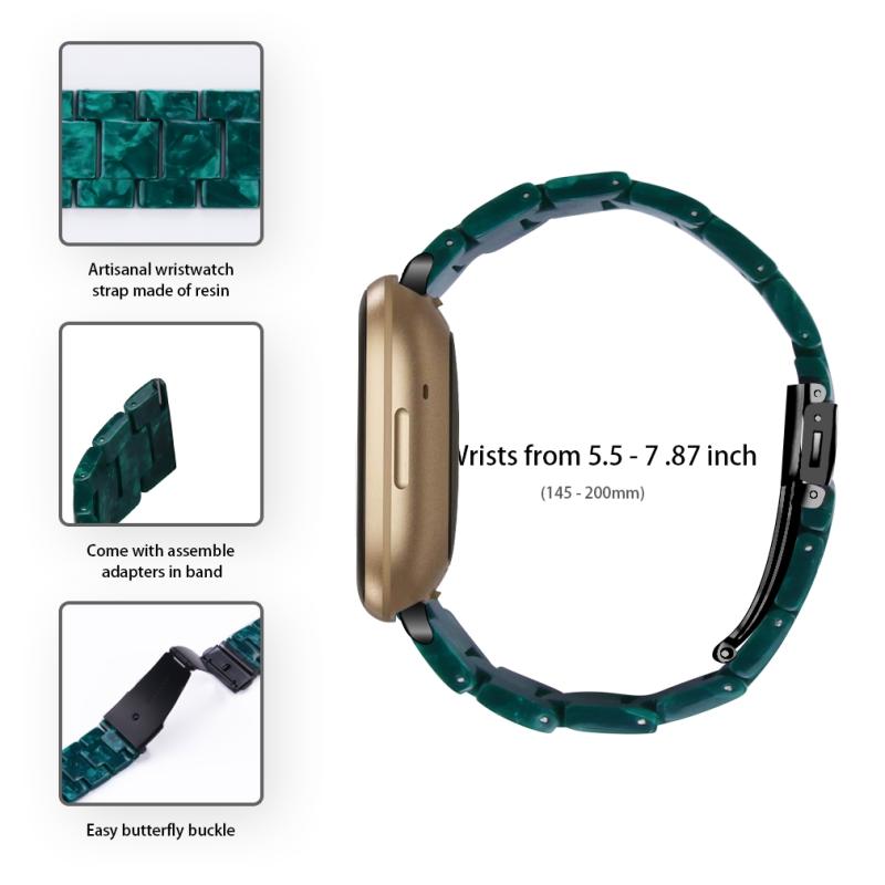 For Fitbit Versa 3 / Sense Universal Resin Watch Band(Dark Green Flower)