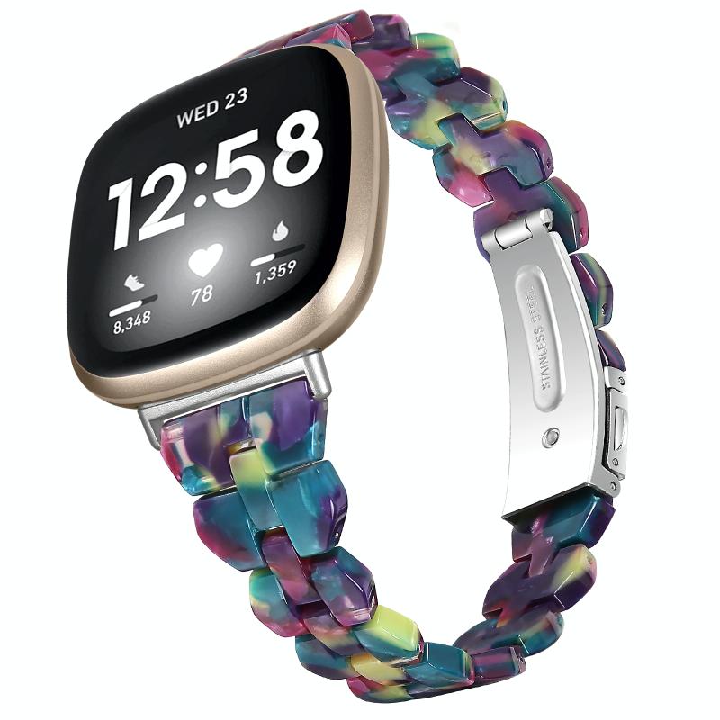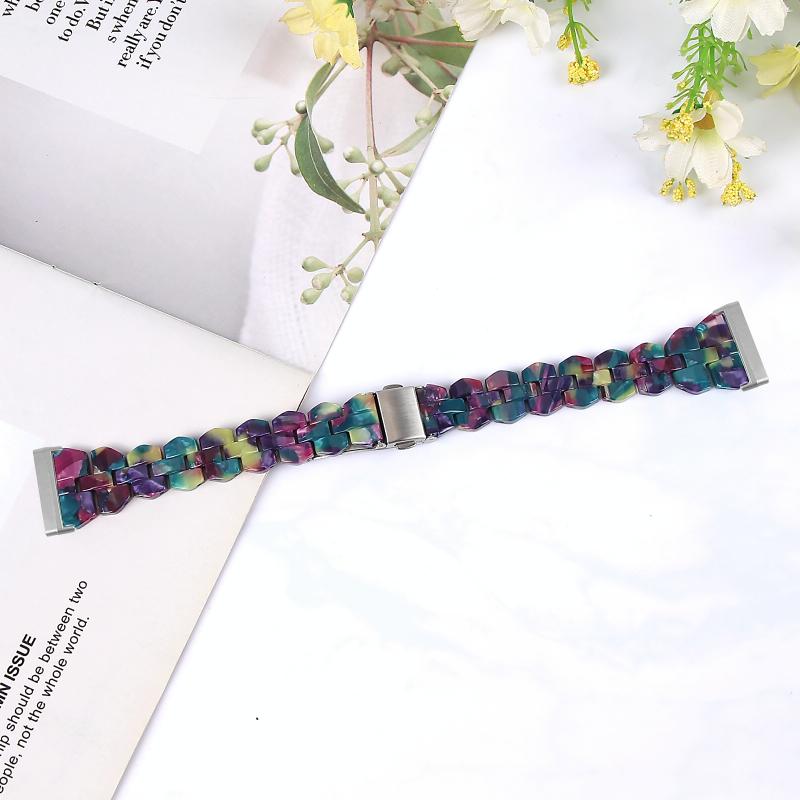 Λουράκι ρολογιού ρητίνης Universal Rhombus για Fitbit Versa 3 / Sense (Μωβ Πράσινο Λουλούδι)
