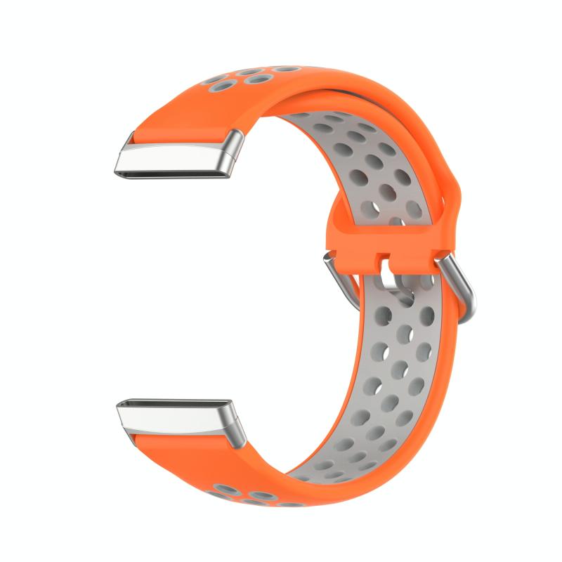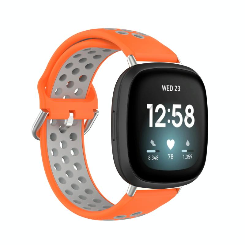 For Fitbit Versa 3 Two-Color Perforated Breathable Silicone Watch Band(Orange+Grey)