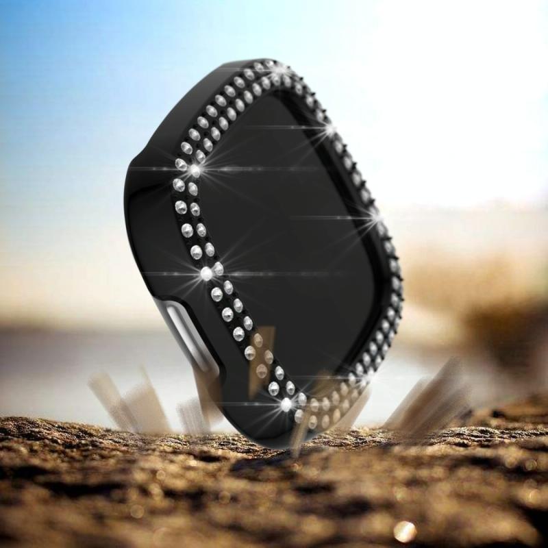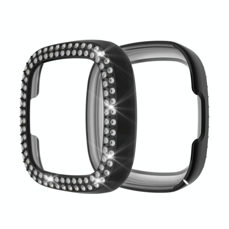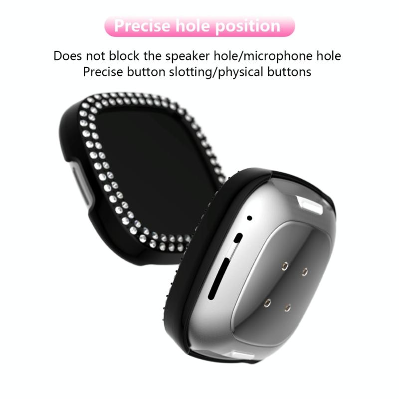 Θήκη προστασίας PC με διαμάντια διπλής σειράς επιμετάλλωσης για Fitbit Versa 3 / Versa Sense (Ασημί)