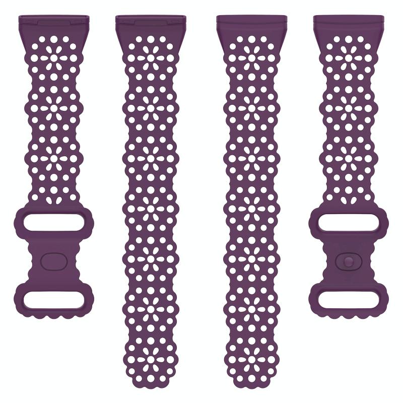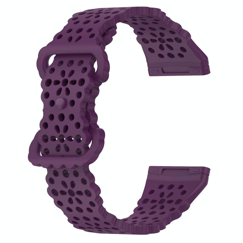 For Fitbit Versa 4 / 3 / Sense 1 / 2 Lace Hollowed Silicone Watch Band(Dark Purple)