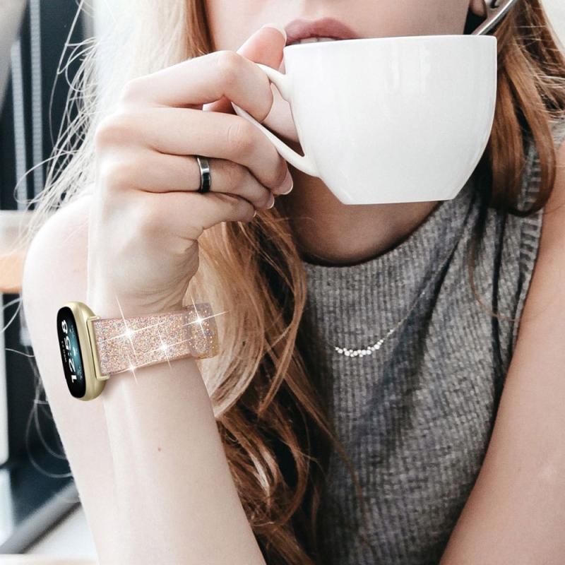 For Fitbit Versa 4 / Sense 2 Universal Flash Powder TPU Watch Band(Rose Gold)