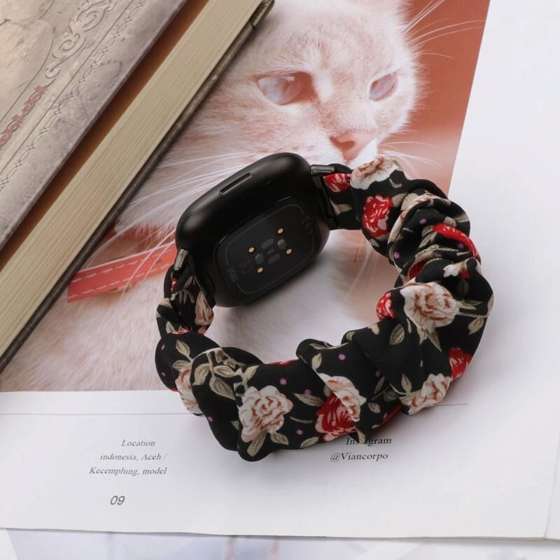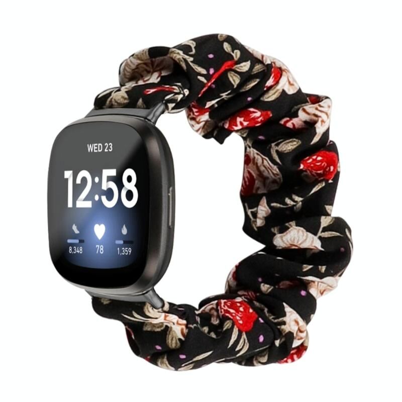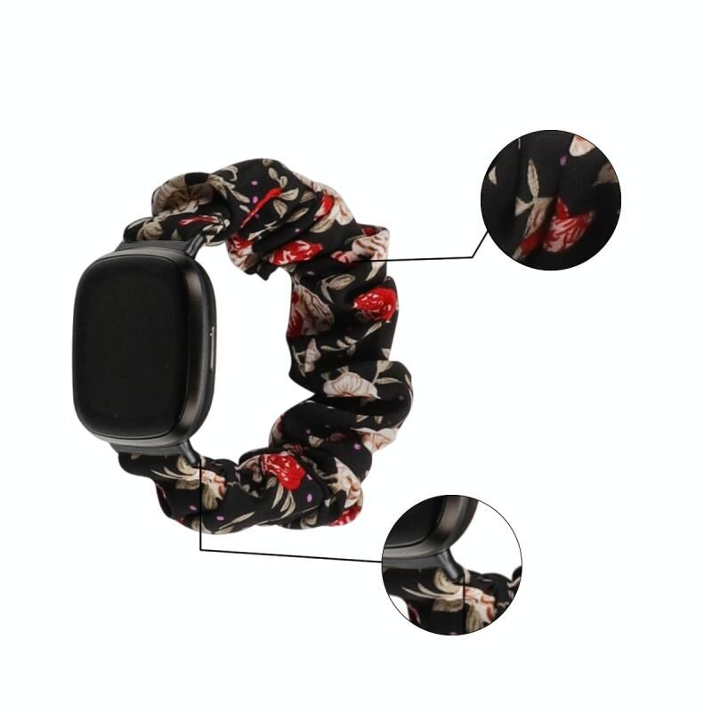 Για Fitbit Versa 4 / Sense 2 Universal Hair Ring Cloth Watch Band (μαύρο Floral)
