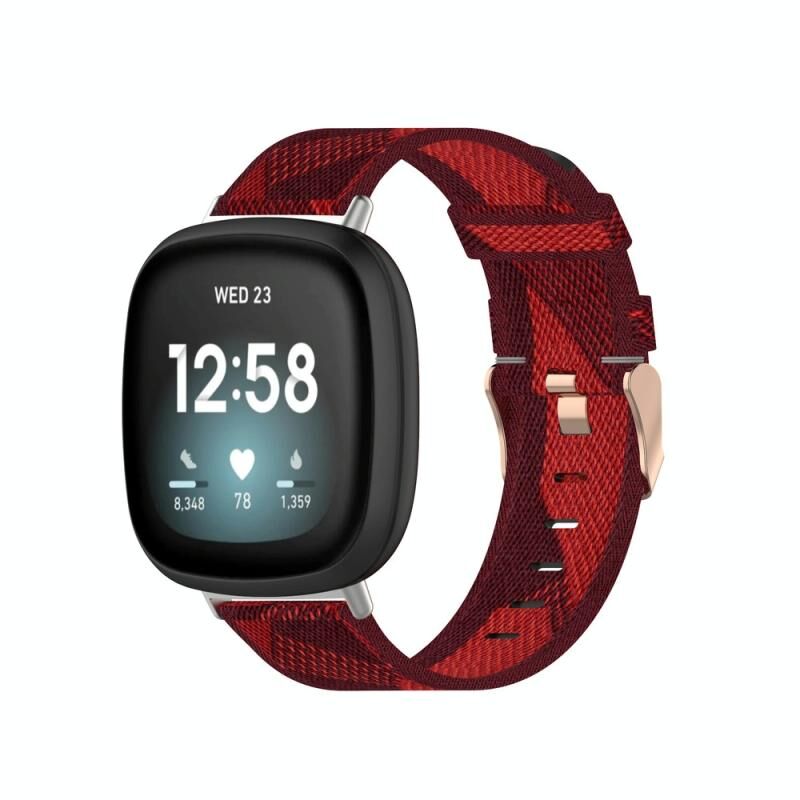 Για Fitbit Versa 4 / Sense 2 Universal Nylon Weave Canvas Watch Band (κόκκινες ρίγες)