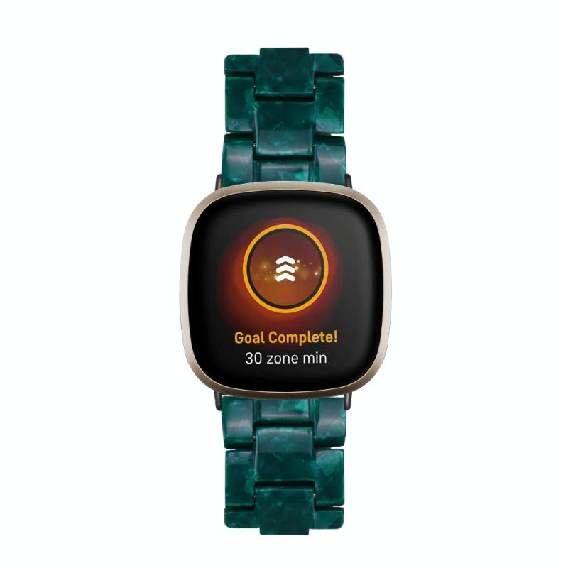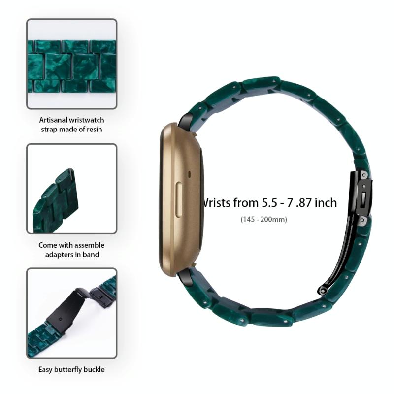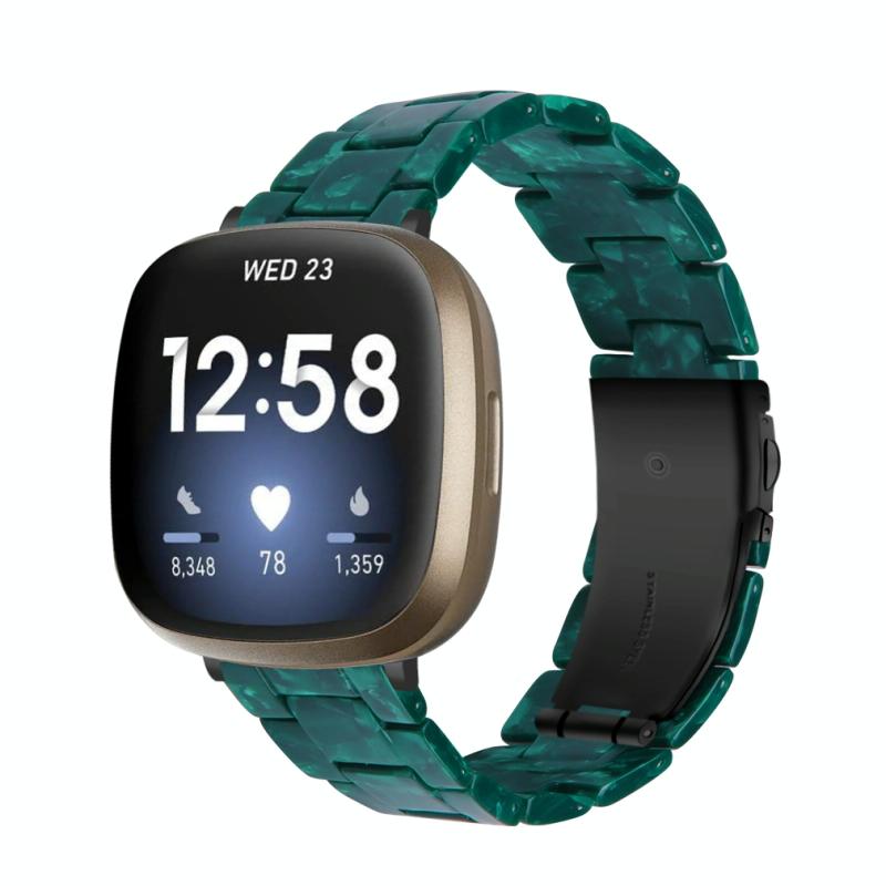 For Fitbit Versa 4 / Sense 2 Universal Resin Watch Band(Dark Green Flower)