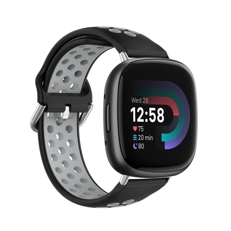 Για Fitbit Versa 4 Διχρωμία διάτρητη αναπνεύσιμη ζώνη ρολογιού σιλικόνης (μαύρο + γκρι)