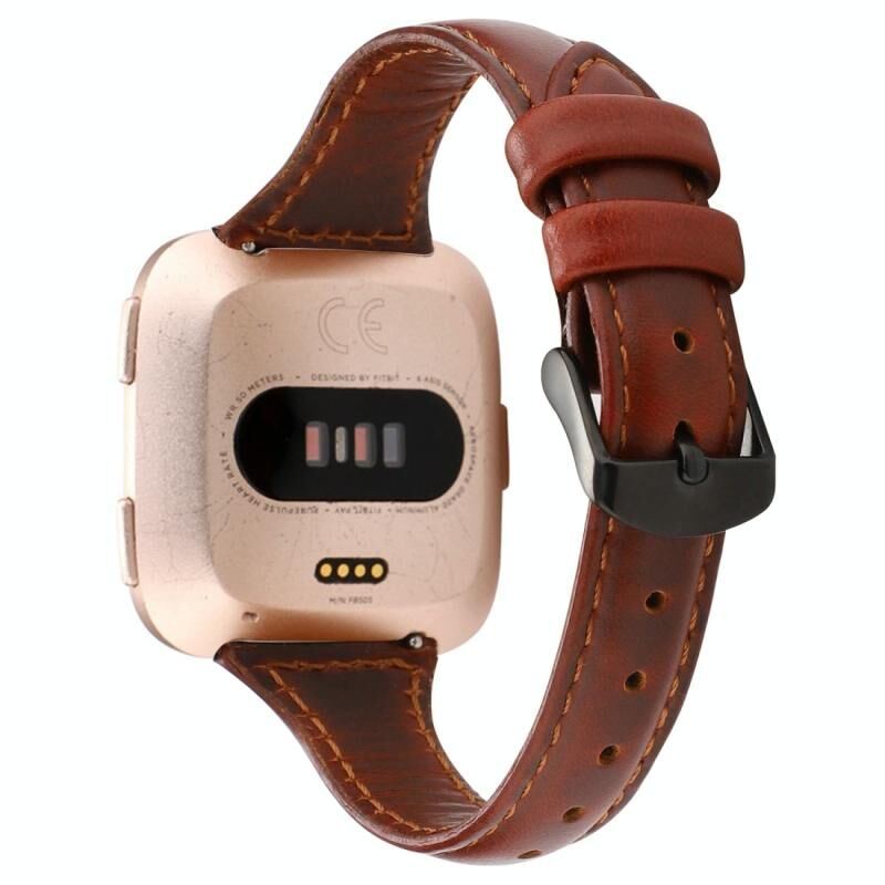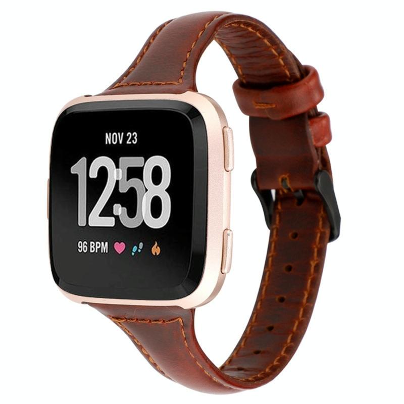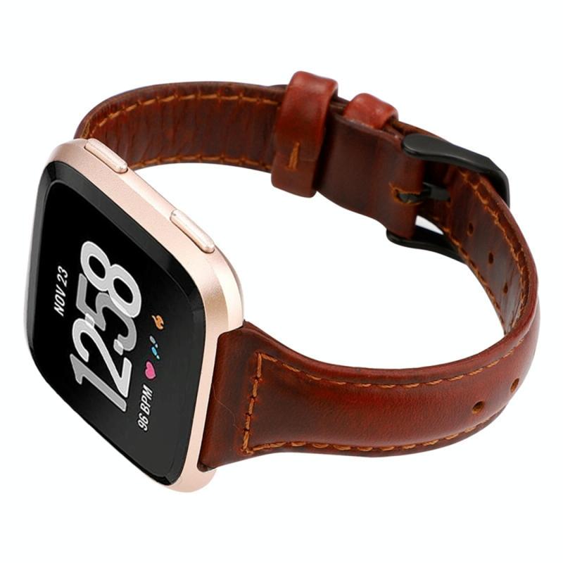 For Fitbit Versa Crazy Horse Texture Genuine Leather Watch Band(Red Brown)