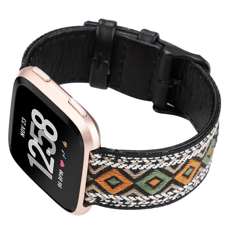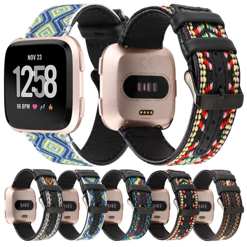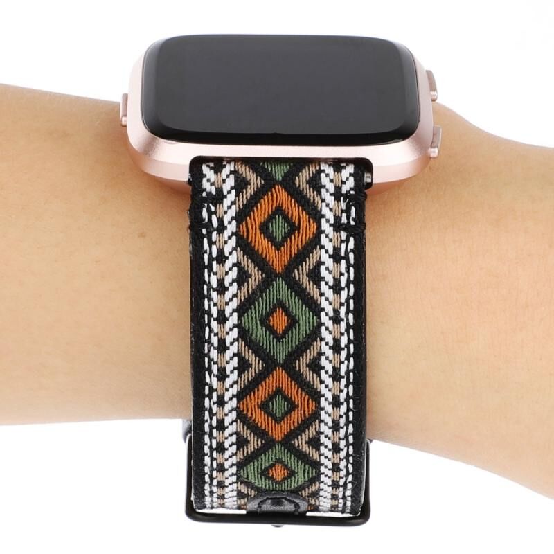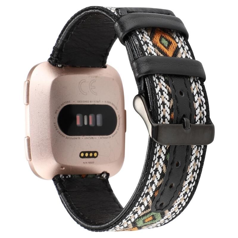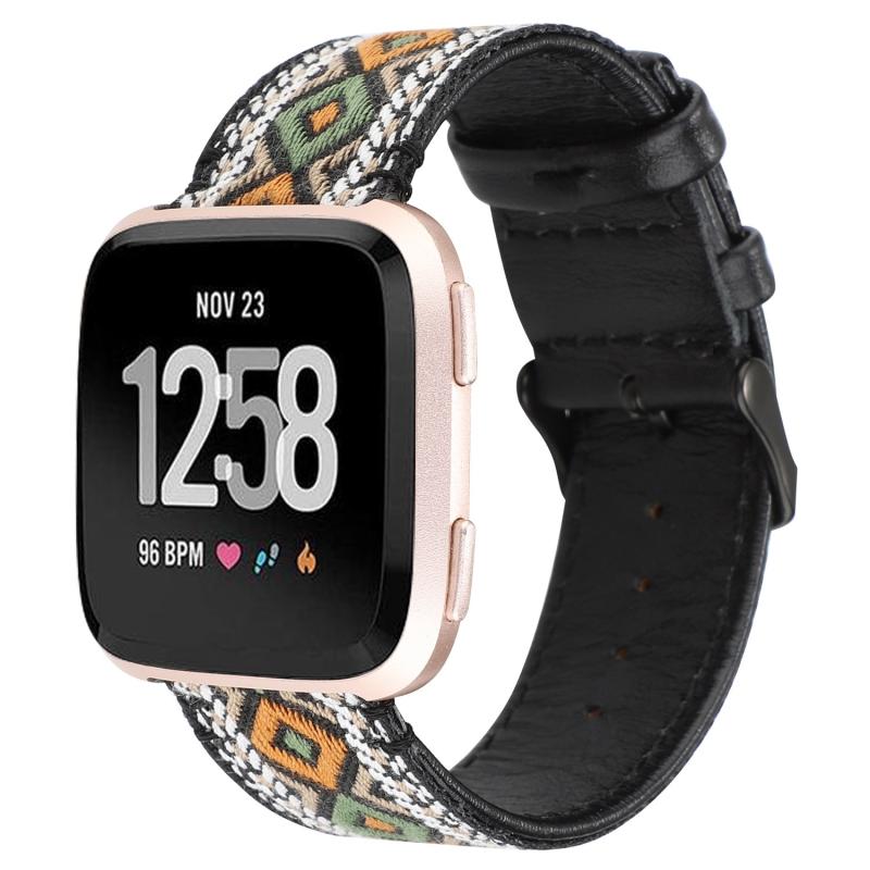 For Fitbit Versa Ethnic Style Genuine Leather Watch Band(Retro)