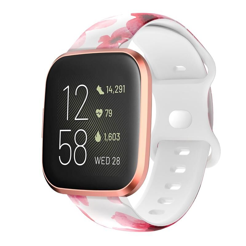 Για Fitbit Versa Εκτύπωση πεταλούδα πόρπη σιλικόνης ρολόι μπάντα ρολογιών (κόκκινα λουλούδια)