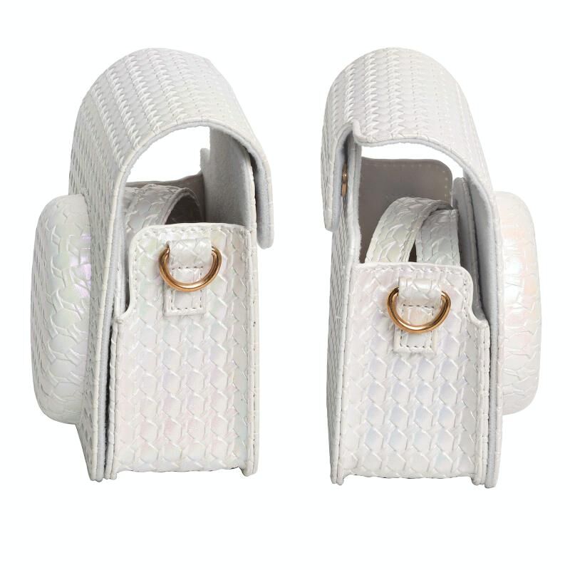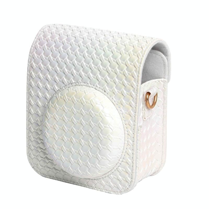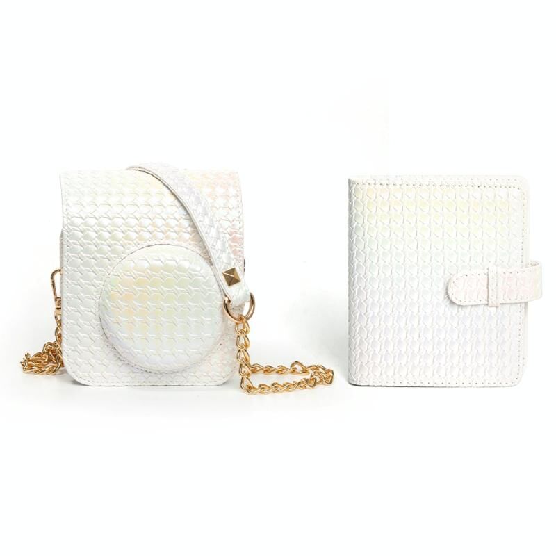 For FUJIFILM instax mini 12 Colorful Woven Leather Case Full Body Camera Bag + Photo Album with Strap (White)