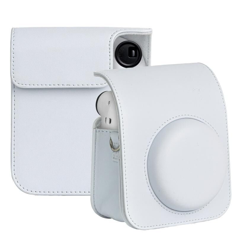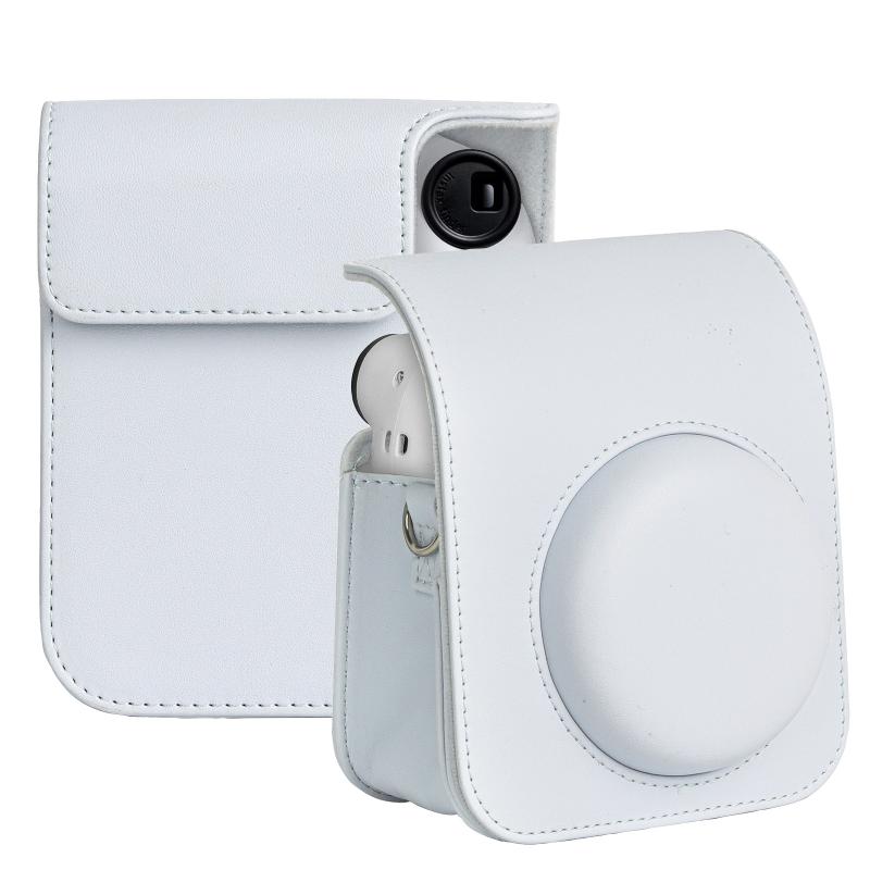 For FUJIFILM instax mini 12 Full Body Leather Case Camera Bag with Strap (White)