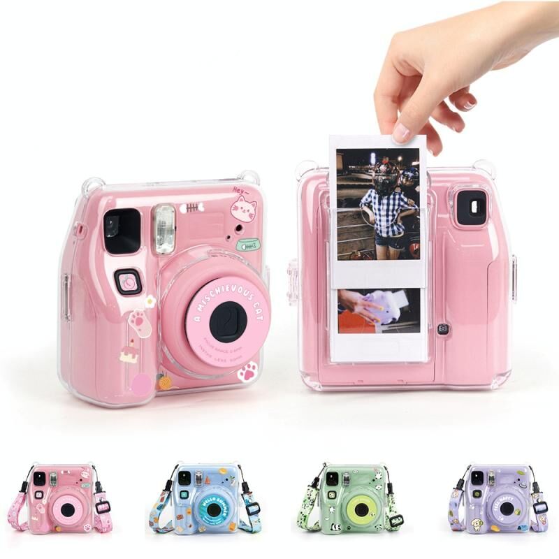 Για Fujifilm instax mini SE Θήκη Φωτογραφιών Κρυστάλλινη Ιμάντας Ώμου Σετ Αυτοκόλλητων (Μπλε Παραλία Ταξίδι)