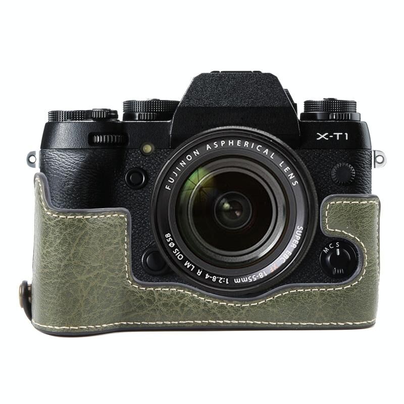 Για FUJIFILM X-T1 Βουβάλι υφή PU δέρμα φωτογραφική μηχανή μισή υπόθεση βάσης (πράσινο)