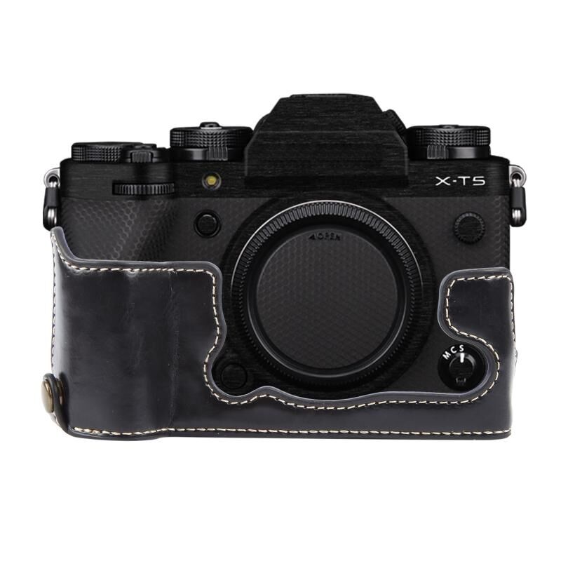 For FUJIFILM X-T5 Glossy PU Leather Camera Half Case Base(Black)