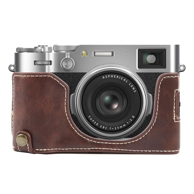 Για FUJIFILM X100VI Γυαλιστερό PU δέρμα φωτογραφικής μηχανής Μισή βάση θήκης (καφέ)