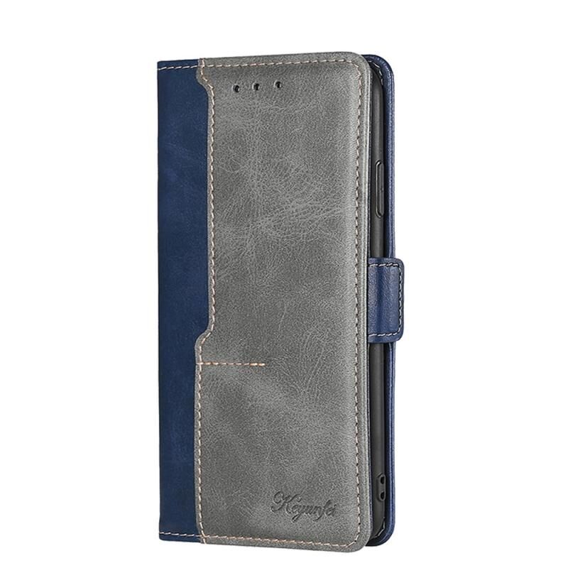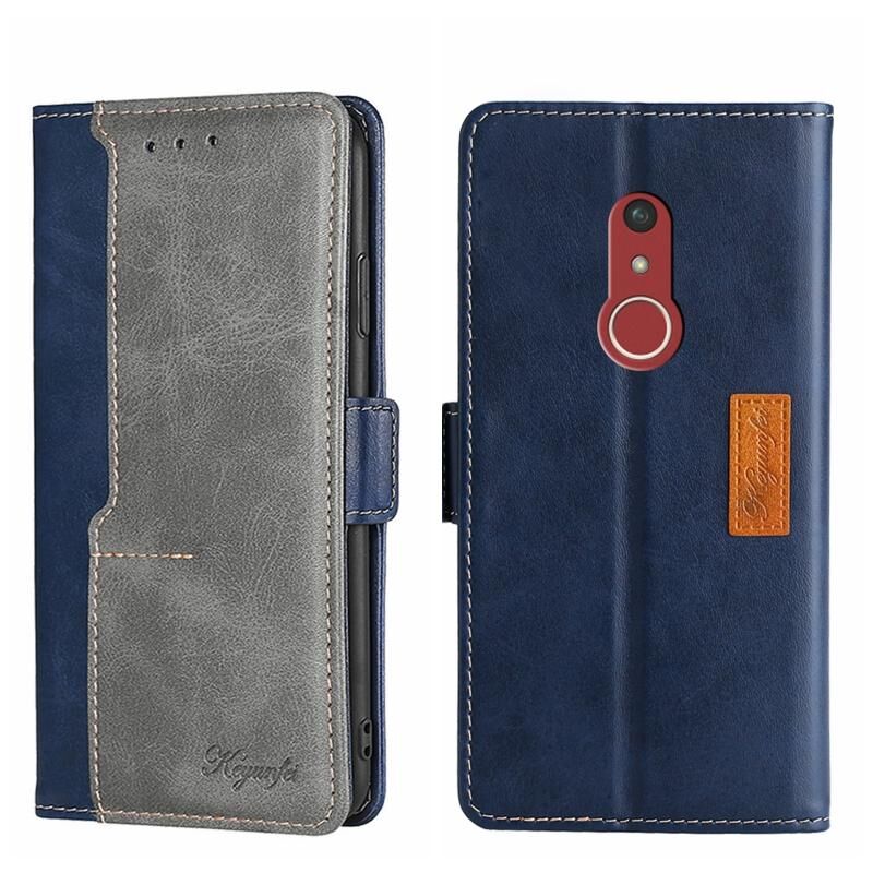 Για Fujitsu Arrow Be4 Plus F-41B αντίθεση χρώμα πλευρά πόρπη δερμάτινη θήκη τηλεφώνου (μπλε + γκρι)
