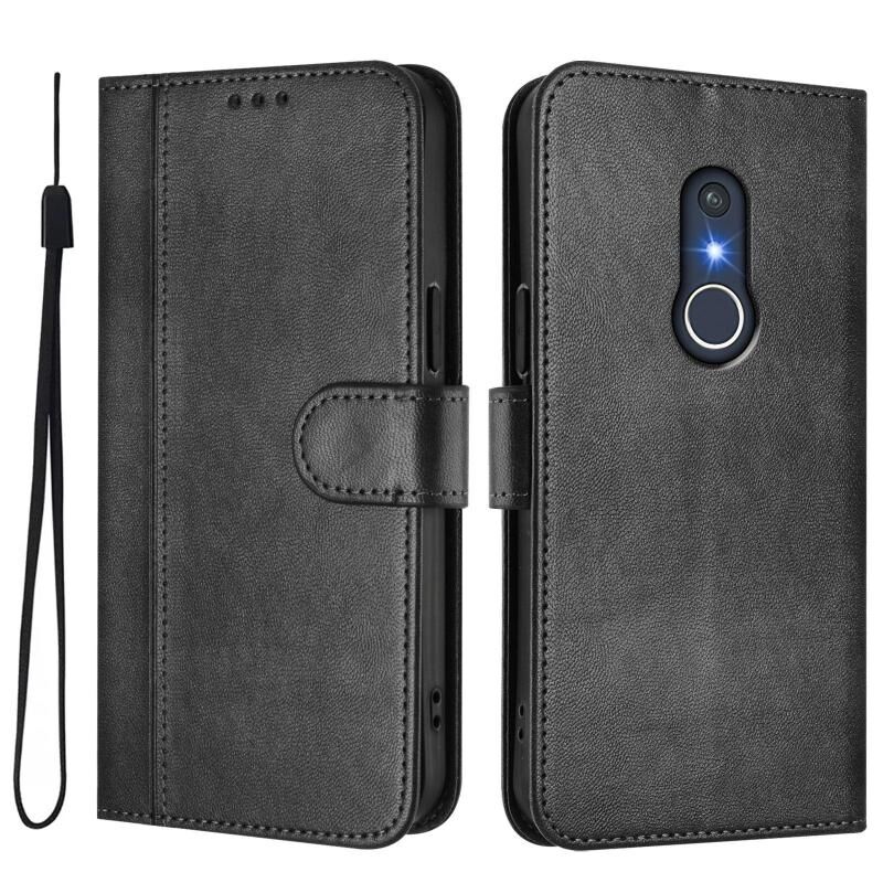 Θήκη τηλεφώνου από δέρμα retro με αγκράφα και ραφές για Fujitsu Arrow Be4 Plus F-41B (Μαύρο)