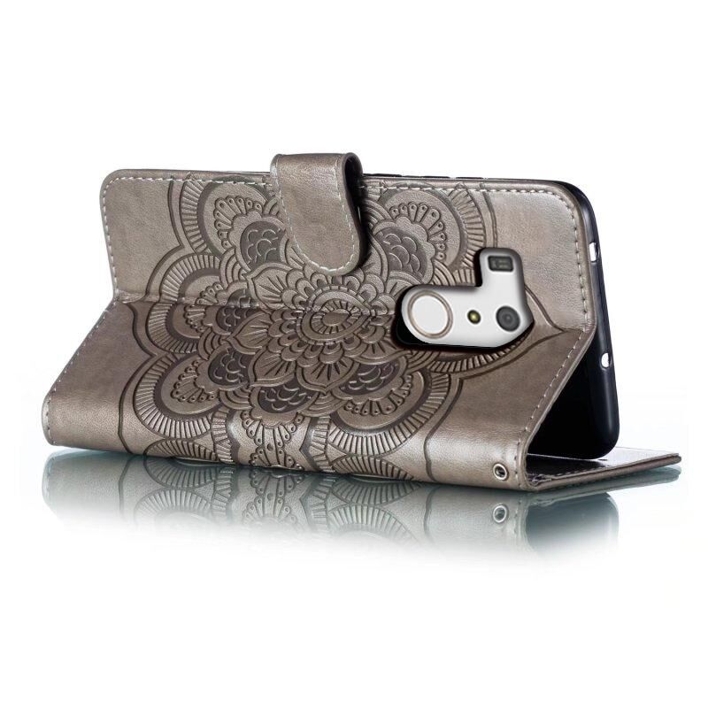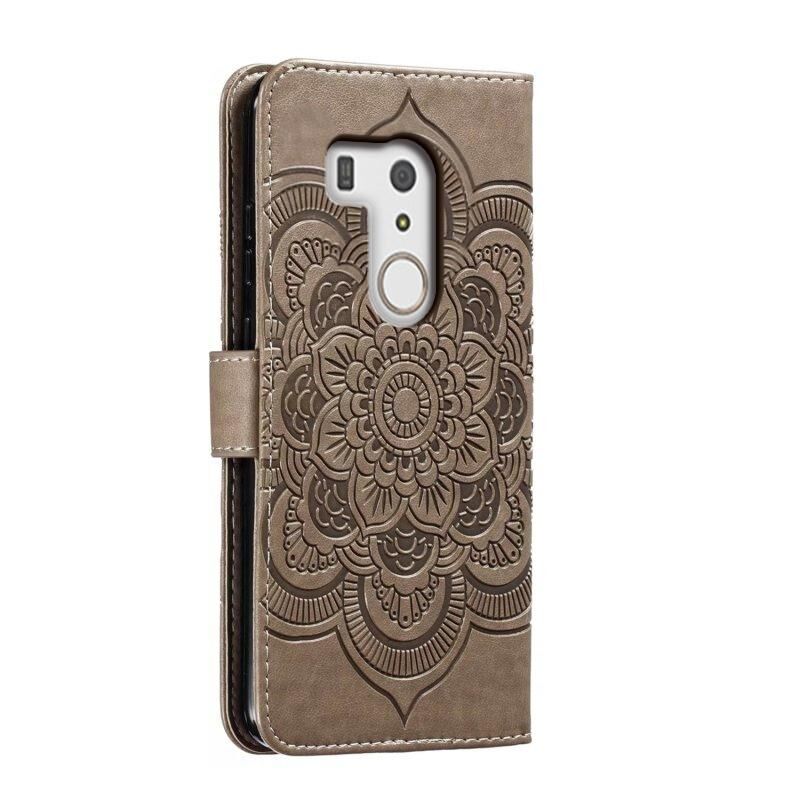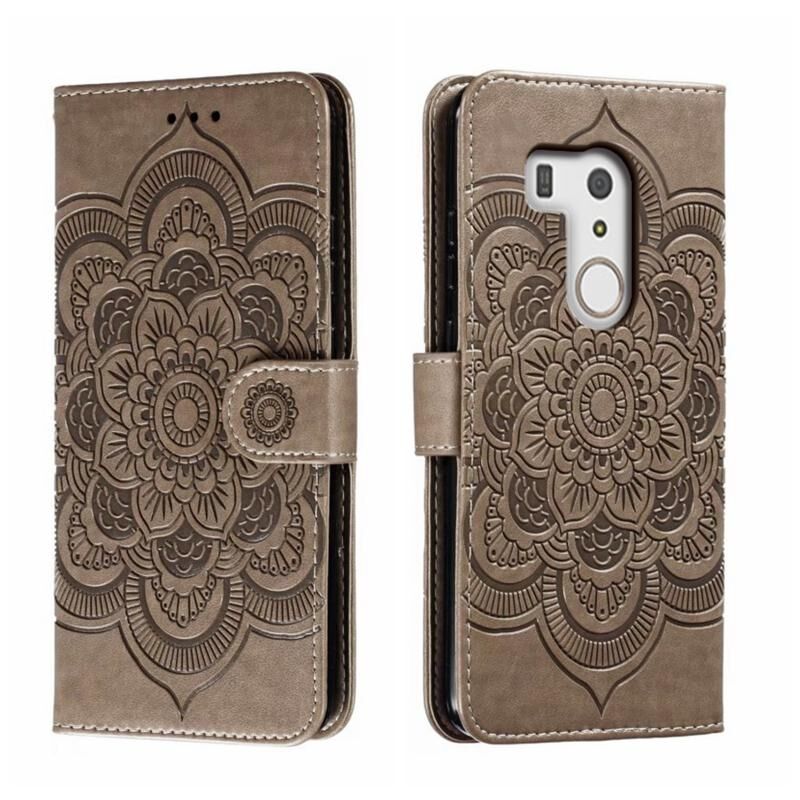 Για Fujitsu βέλη Be3 F-01L Sun Mandala ανάγλυφο μοτίβο τηλέφωνο δερμάτινη θήκη (γκρι)