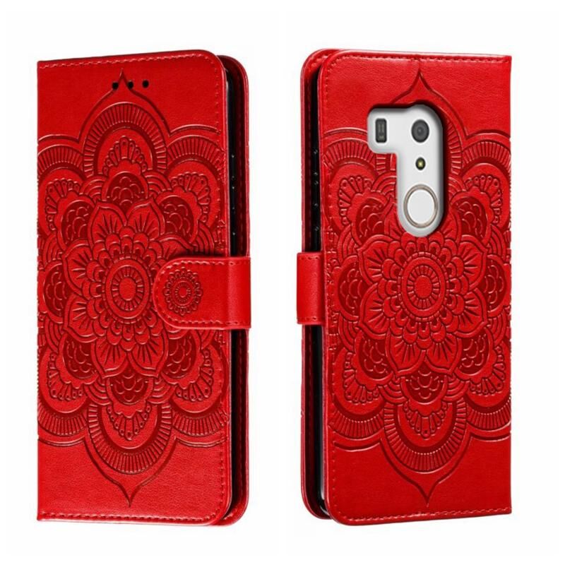 Για Fujitsu βέλη Be3 F-01L Sun Mandala ανάγλυφο μοτίβο τηλέφωνο δερμάτινη θήκη (κόκκινο)