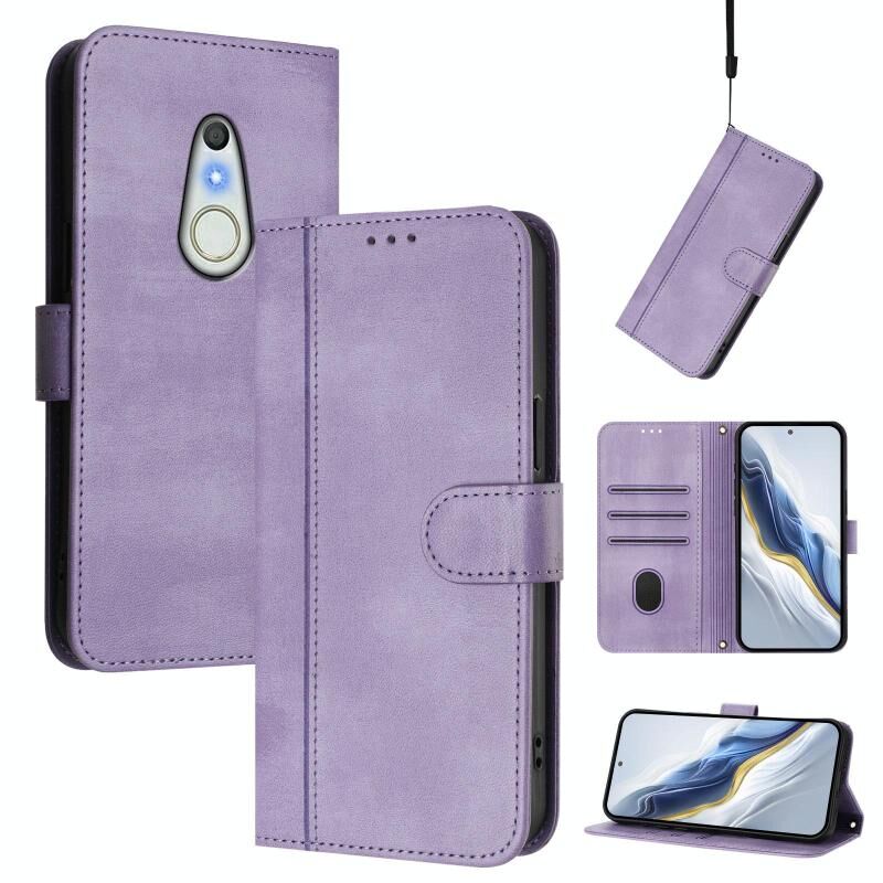 Θήκη τηλεφώνου από δέρμα retro με αγκράφα και ραφές για Fujitsu Arrows Be4 F-41A (Μαύρο)