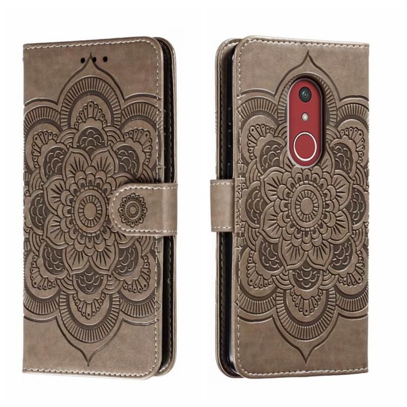 Για Fujitsu βέλη Be4 Plus F-41B Sun Mandala ανάγλυφο μοτίβο τηλέφωνο δερμάτινη θήκη (γκρι)