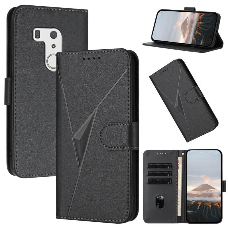 Θήκη τηλεφώνου από δέρμα με σχέδιο τριγώνου και αγκράφα για Fujitsu Arrows F-01L F-42A (Σκούρο Μωβ)