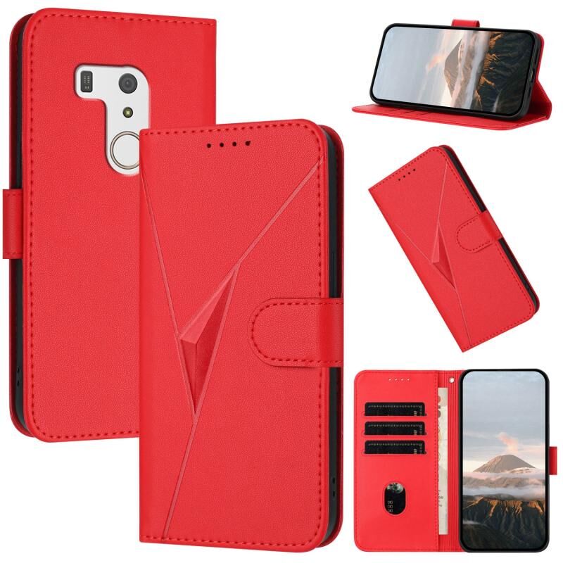 Θήκη τηλεφώνου από δέρμα με σχέδιο τριγώνου και αγκράφα για Fujitsu Arrows F-01L F-42A (Κόκκινο)