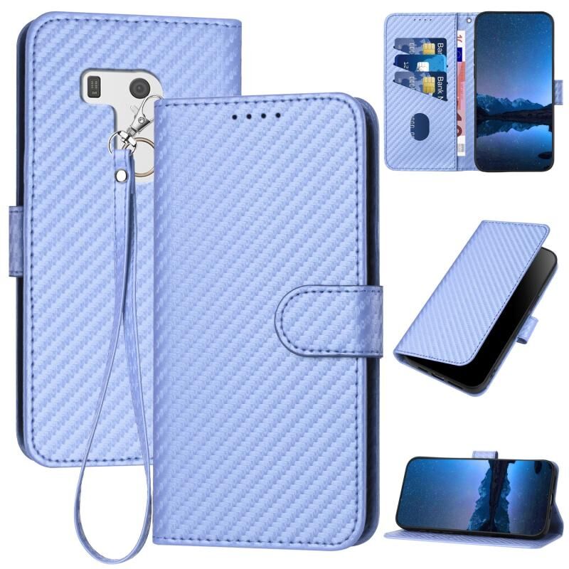 For Fujitsu Arrows F-01L F-42A YX0070 Carbon Fiber Buckle Leather Phone Case with Lanyard(Light Purple)