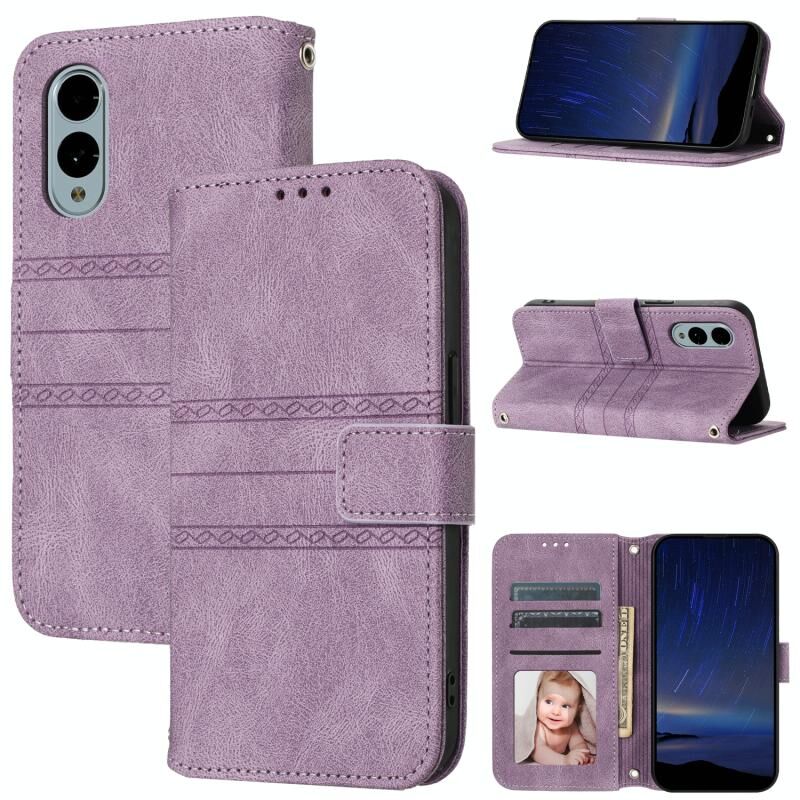 Για Fujitsu βέλη F-51E We2 ανάγλυφο ρίγες δέρμα αίσθηση δέρμα τηλέφωνο υπόθεση (Light Purple)