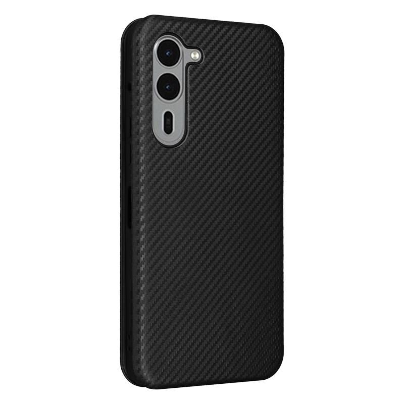 For Fujitsu Arrows F-51E We2 Plus Carbon Fiber Texture Flip Leather Phone Case(Black)