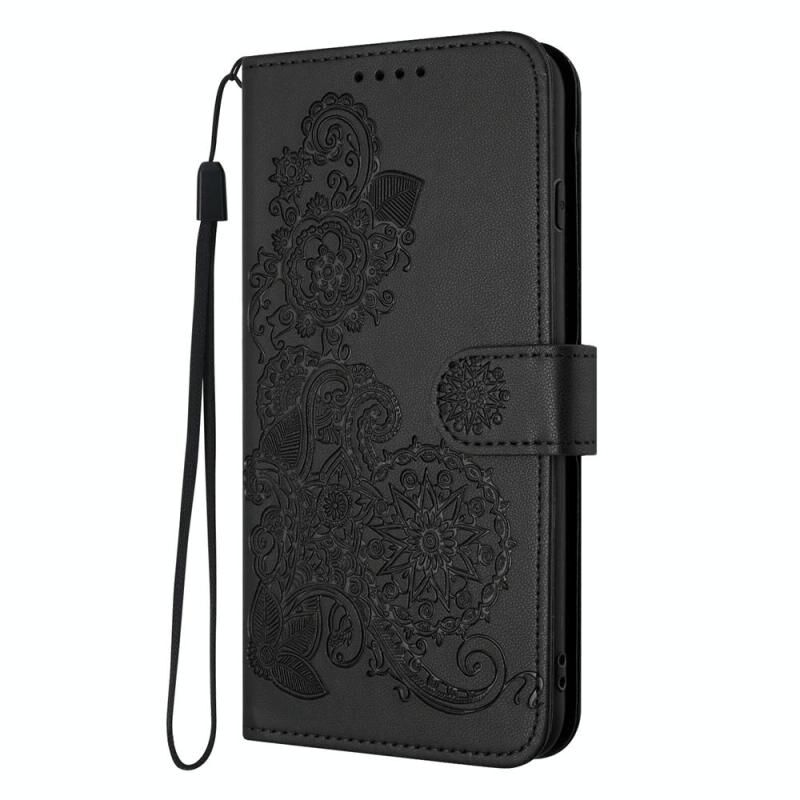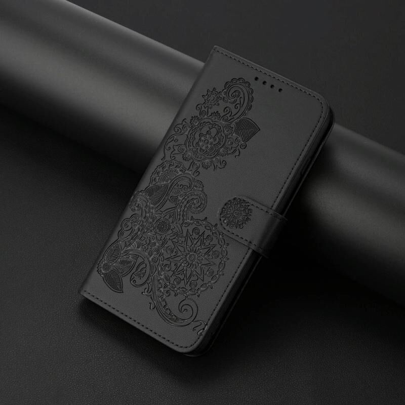 For Fujitsu Arrows F-52B Datura Flower Embossed Flip Leather Phone Case(Black)