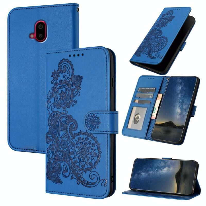 For Fujitsu Arrows F-52B Datura Flower Embossed Flip Leather Phone Case(Blue)